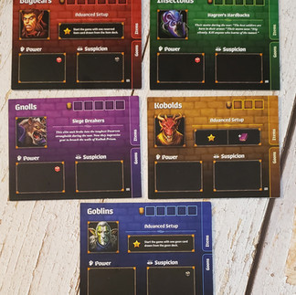 In this expansion, players can earn more reputation stars and bonuses in new ways by sending their Seeker beneath the prison. Explore the Catacombs with new lanterns, collect reputation, craft magical Items, recruit Goons, but be careful to avoid the guards' Suspicion. The cleverness of the catacombs is lively but adds the chance of blind bidding to enter the catacombs, vexing. The blind bidding in the base game leads to some spirited competitions; however, vying for the opportunity to search the catacombs was fierce – in a good way. This family-friendly game is reminiscent of our Dungeons&Dragons weekly game by encompassing a tribe of minions and searching for loot and resources. These baddies are depicted delightfully- dare I say- adorable.